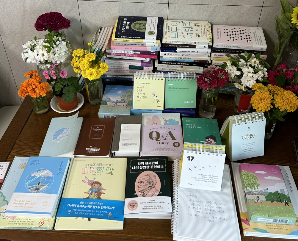 우리는 모두 미소로서 엄마의 문장에 긍정하고 인정했다. 꽃이 있기를 말한적 없으나 엄마의 유일한 고독 산책 길 집 주변을 혼자서 걷다가 만나는 들에서 만나는저마다의 예쁜 컬러를 지닌 꽃들이 만발하도록 딸이 매일 함께 하는 소중한 공간이기에 엄마도 살피시는 무언의 하나 엄마와 나 지성과의 아늑한 정원이 바로 이곳 나의 인문학 책상이자 서재이며 특별한 화원 이니까.