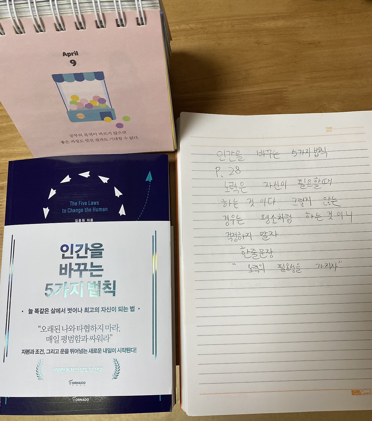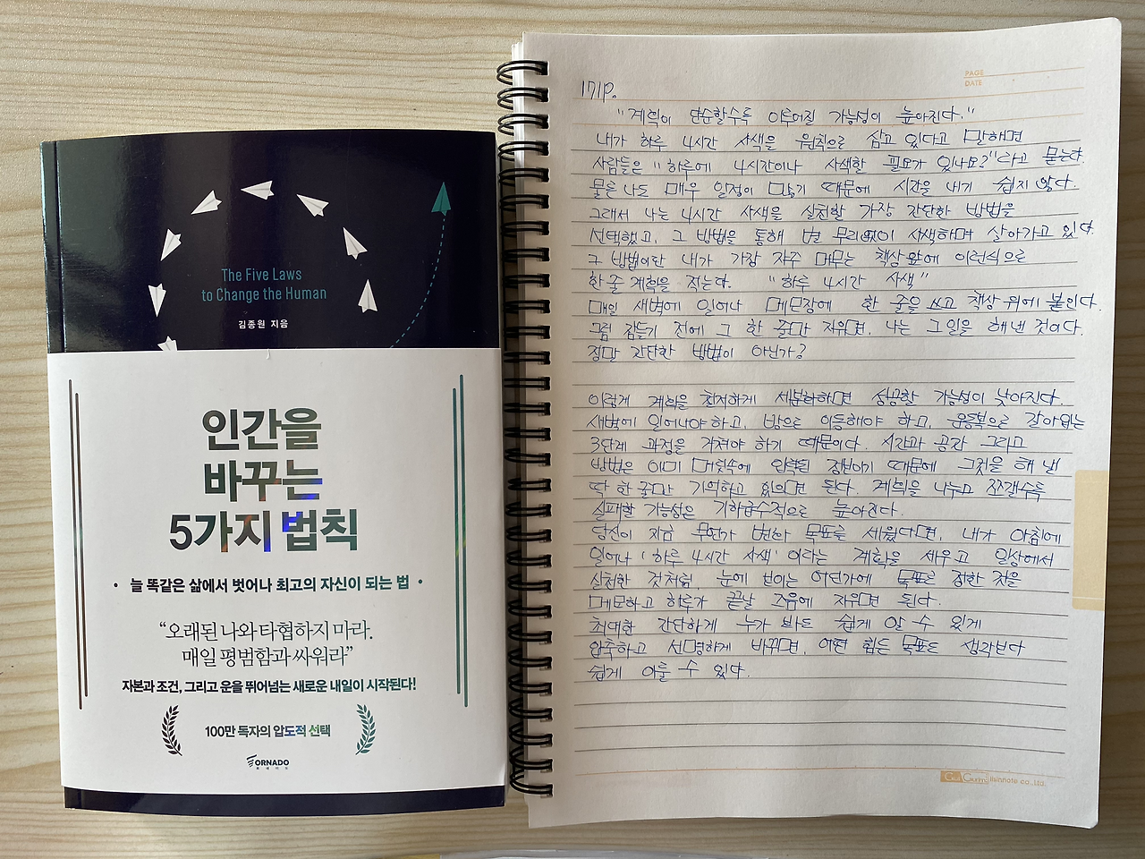 김종원 작가의 신간 인간을 바꾸는 5가지 법칙을 읽고