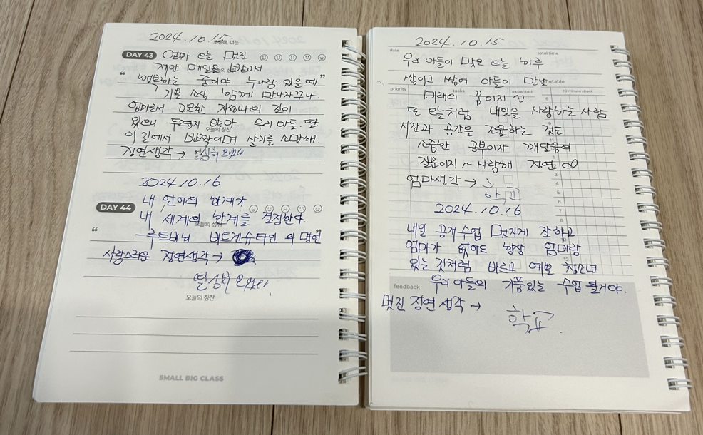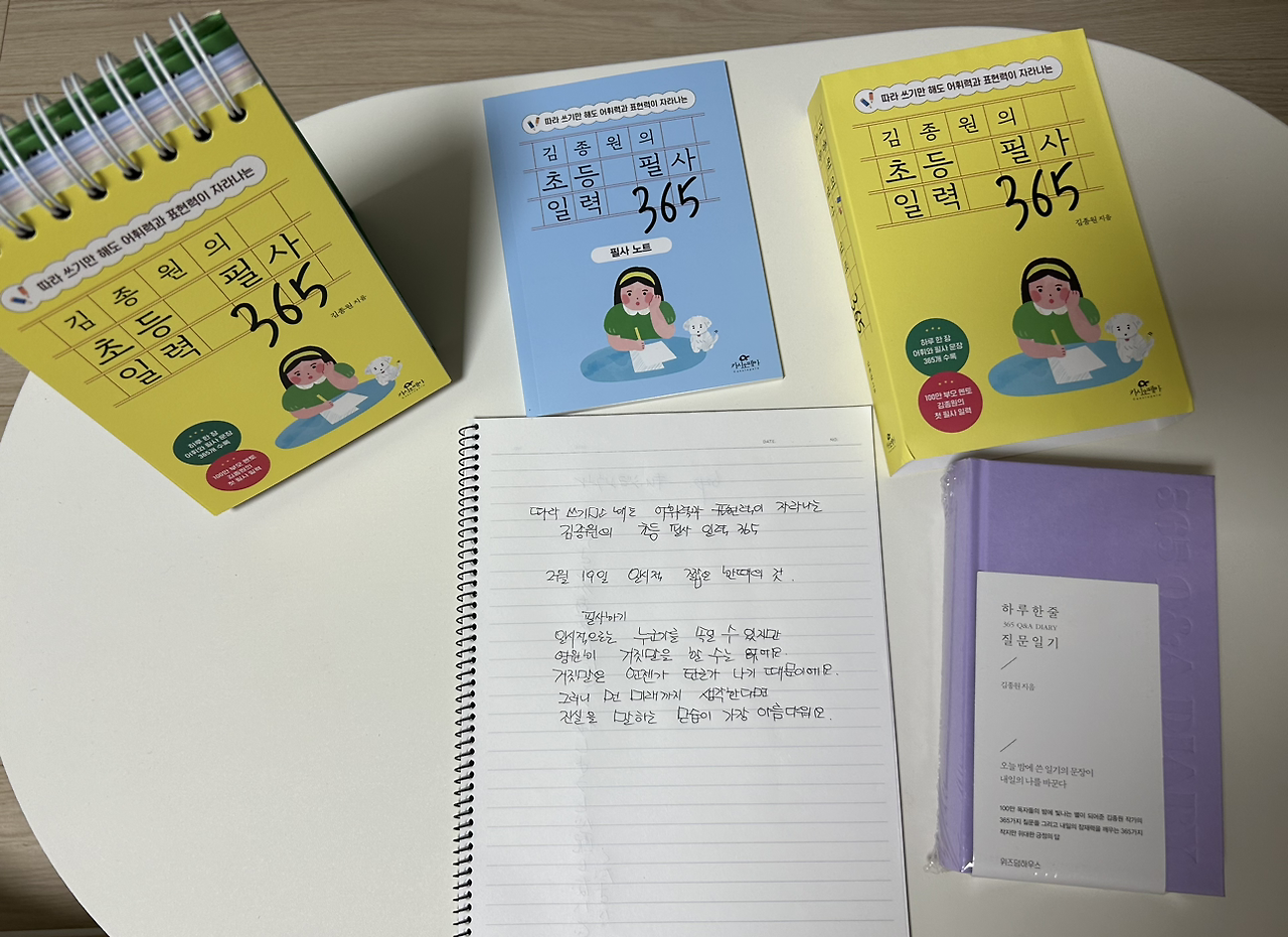 맛있는 독서 즐거운 국어시간 글따라 단어의 뜻을 풀이하고 보고 쓰고 낭독하는 글과의 만남이 또 다른 음식처럼 정서적 충만을 질문하게 한다. 아들과 김종원 작가님 초등 필사 일력 365 첫 페이지를 만나 작업해가며 우리는 뭔가 새로운 나와 우리의 멋을 그려보는 지적 놀이를 함께 그려갈 많은 날이 준비 되어 있다.