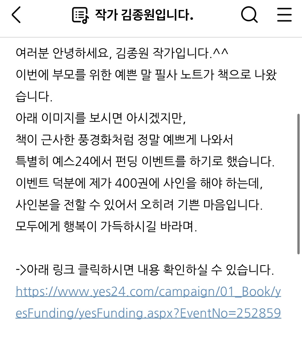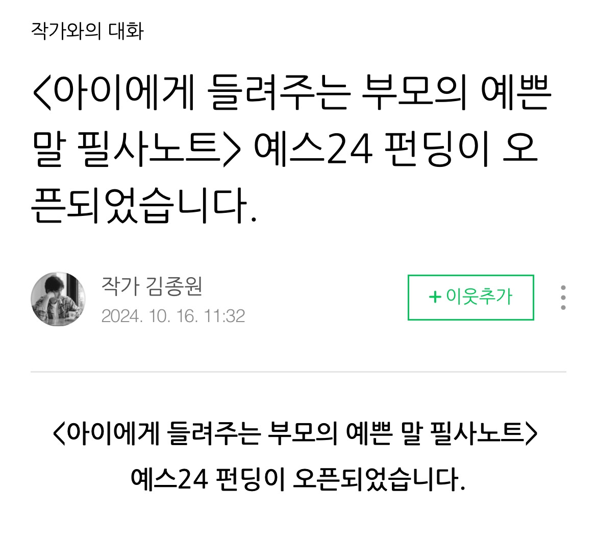 부모의 예쁜 말 필사 노트 예스 24 펀딩 도서