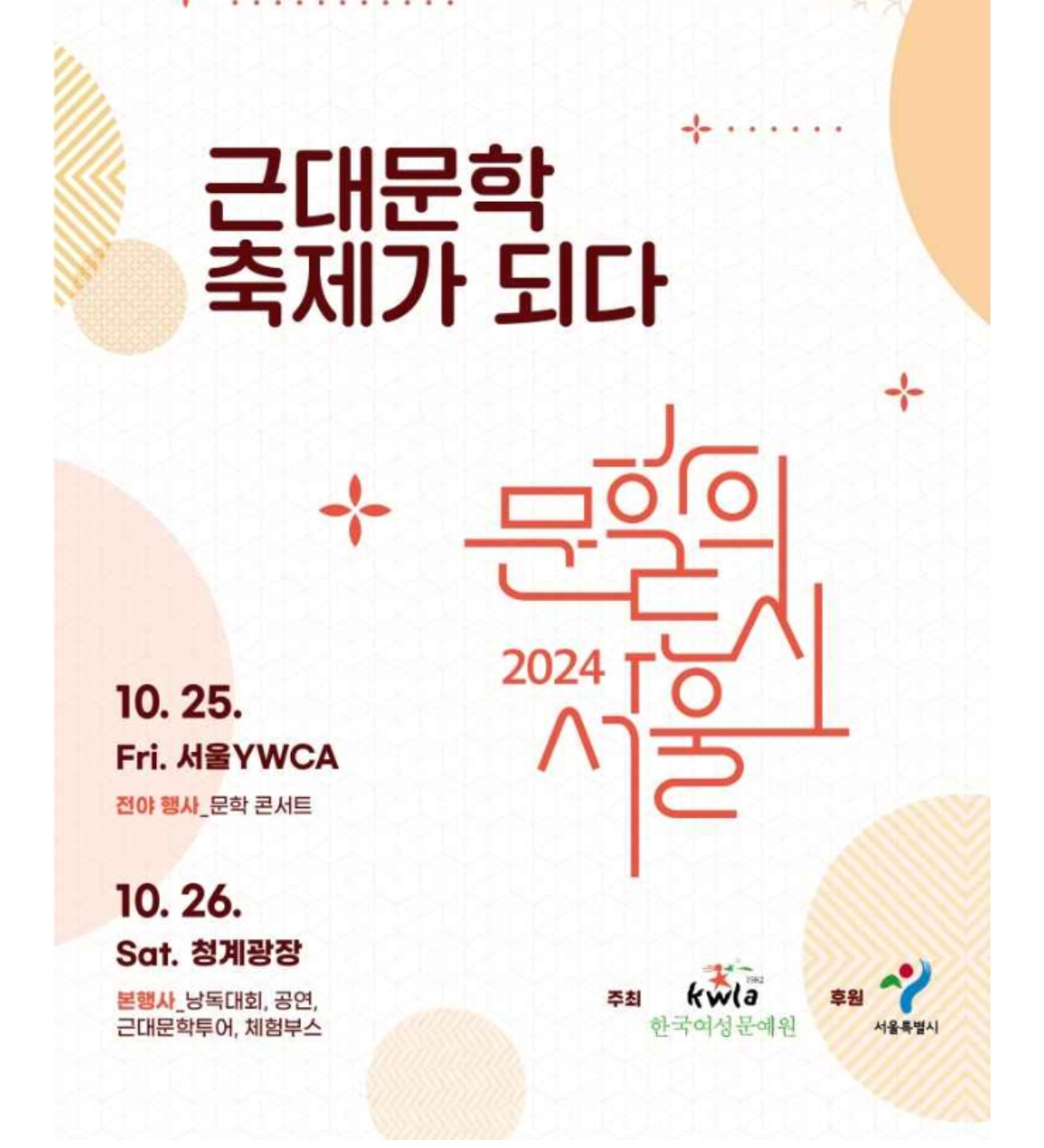 10월 25일 서울 문학 축제 소식이 뜨거운 건 한국 문학으로 다가가는 지적 여정이 될 것이며 지성 김종원 작가님과 함께라는 특별한 소식이 있어 그날의 역사적풍경길이 짙어가는 가을의 길목과 매우 잘 어울릴 테니까.