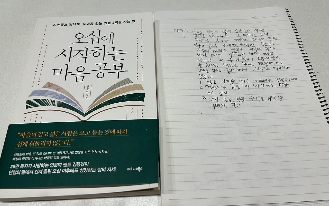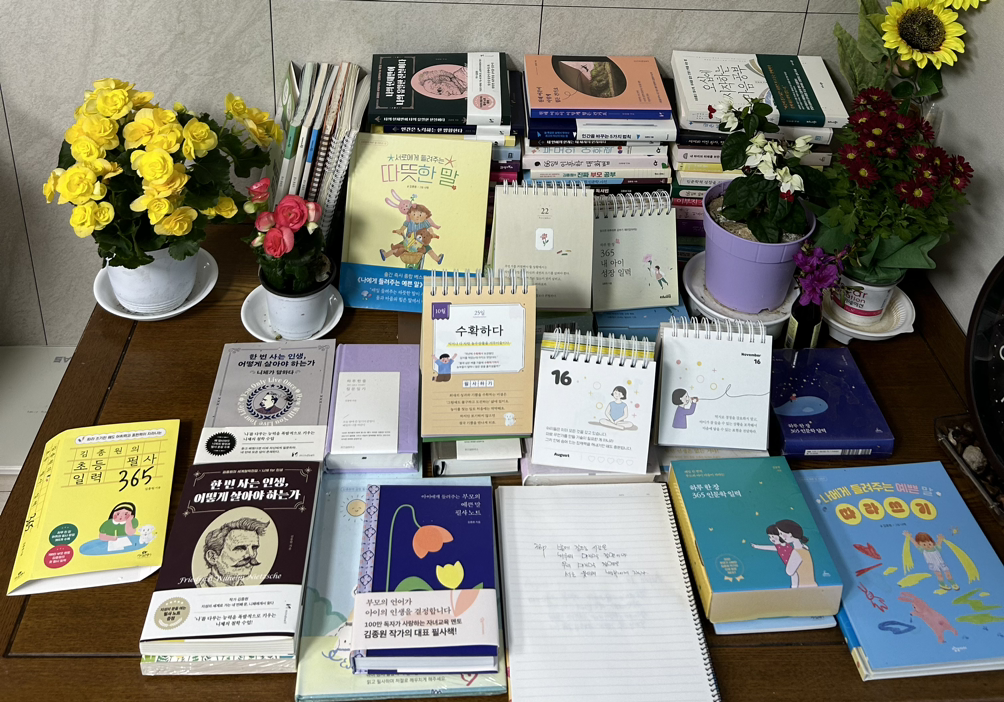 이후로도 고1 아들은 같은 필사 일력 책을 다시 필사할기회가 있고 <아이에게 들려주는 부모의 예쁜 말 필사노트>를 만나볼 수도 있는 다양한 책이 주변과 공간에아름답게 줄 서 있으니 무엇을 고민하지 않고 글과 함께 혼자가 되는 지성길을 산책하며 길을 떠날 수 있다.
