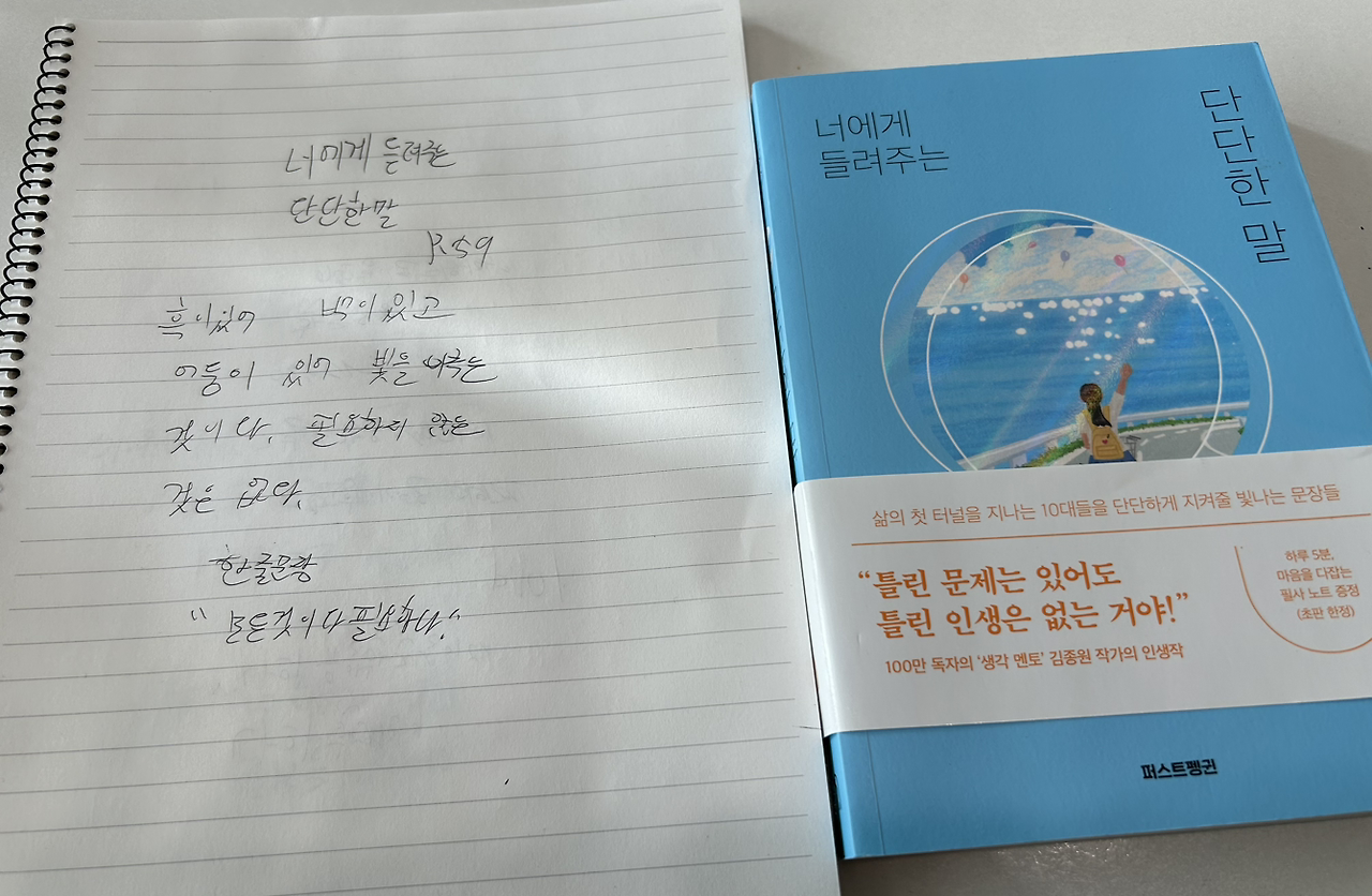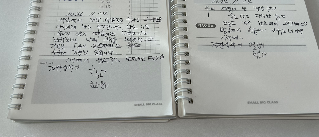 벌써 1년 간 교환 일기를 쓰며 김종원 조승우 작가님과 함께 하는 <마음 우체국 프로그램> 이 더 좋은 날을 기약하며 일단 멈춤의 시간을 보내게 된다. 내년 3~4월에 마음 우체국 관련 책을 공저 집필 하실 거라는 새로운 소식과 함께 물론 내게도 2025 새해에 멋진 소망 소식을 안고 오기를 예고한다.