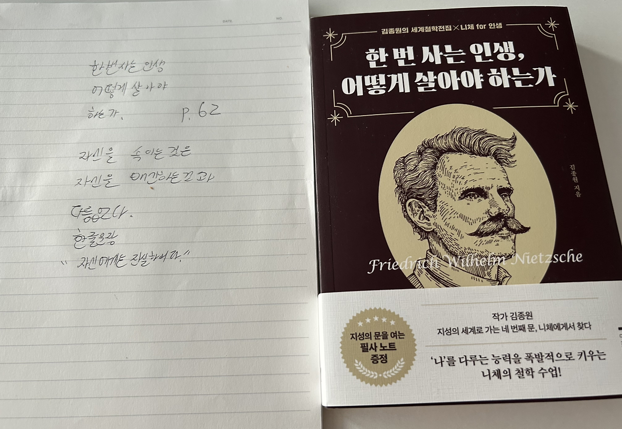 2. 한 번 사는 인생 어떻게 살아야 하는가 62p 를 읽고 고1 필사