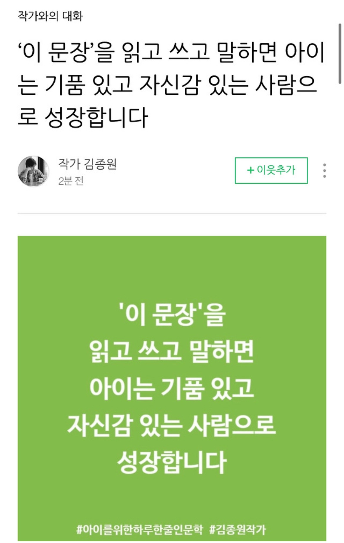 이 문장을 읽고 쓰고 말하면 아이는 기품 있고 자신감 있는 사람으로 성장합니다~