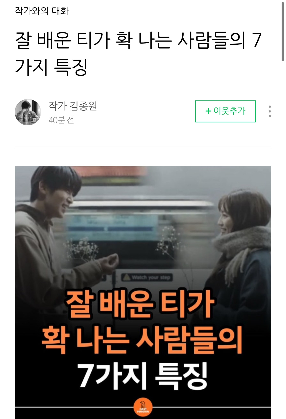 김종원 작가님 저서 관련 글 낭송