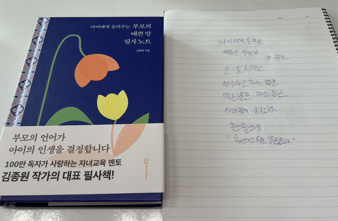 1. 부모의 예쁜 말 필사 노트 212p를 읽고