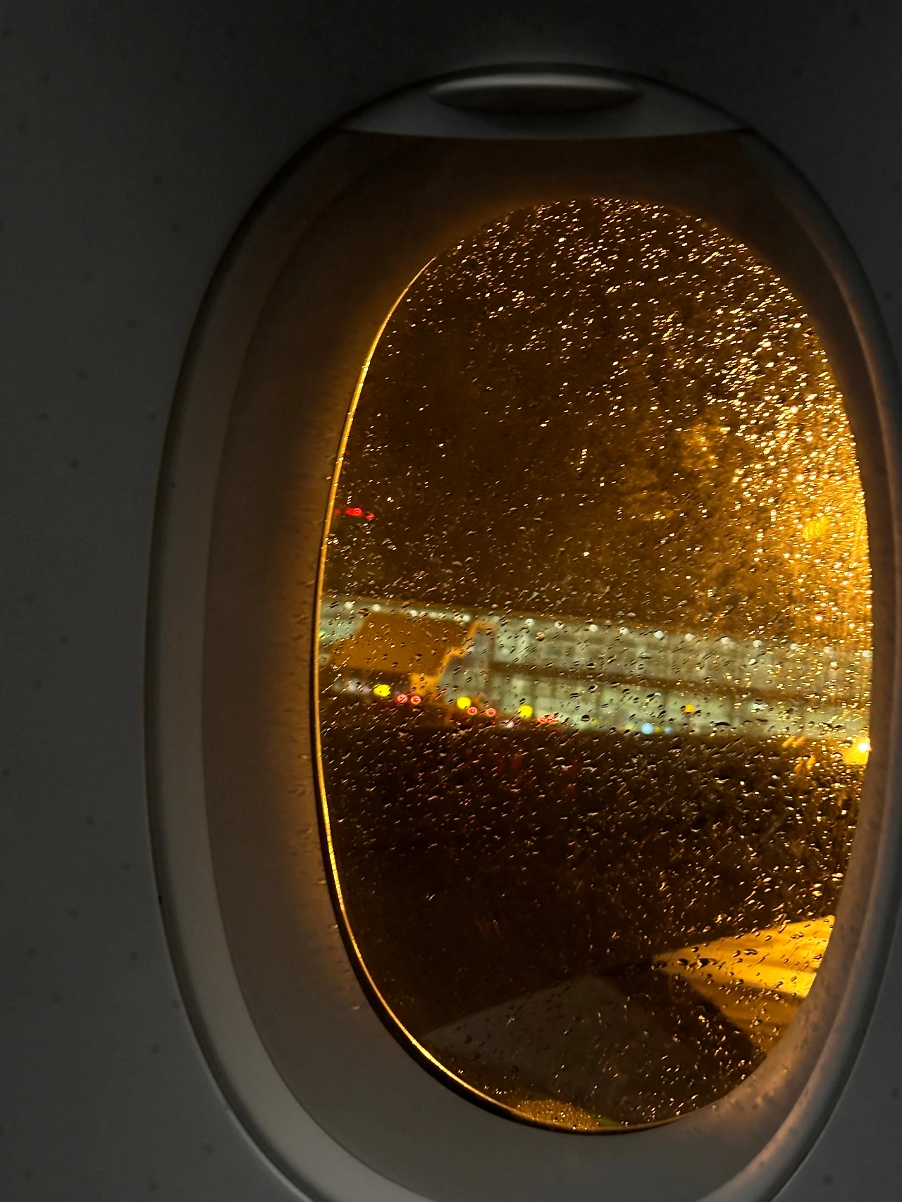 탑승 하니 밖에는 비가 내려요. 탑승 완료