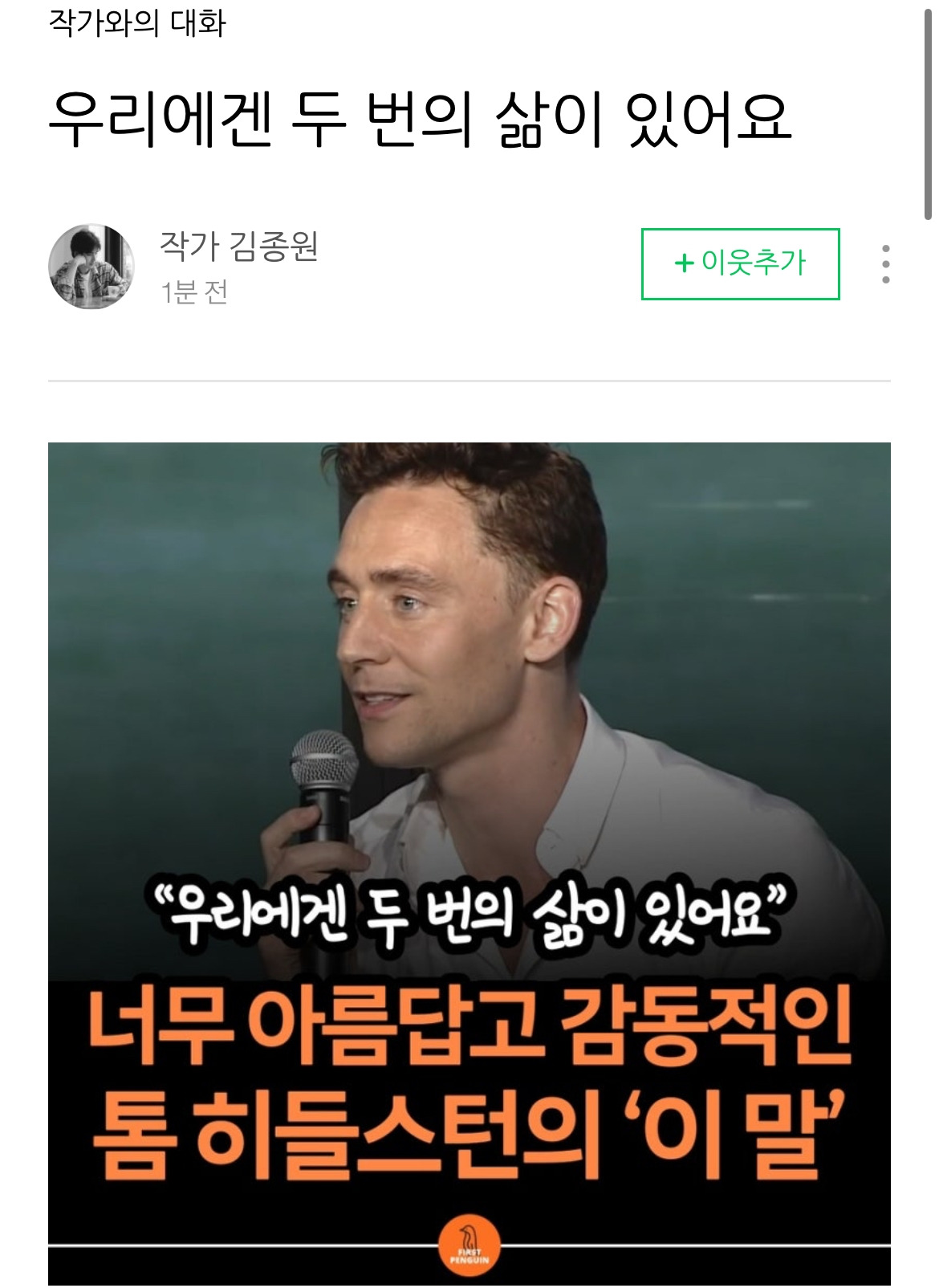 너무 아름답고 감동적인 톰 히들스턴의 ‘이 말’