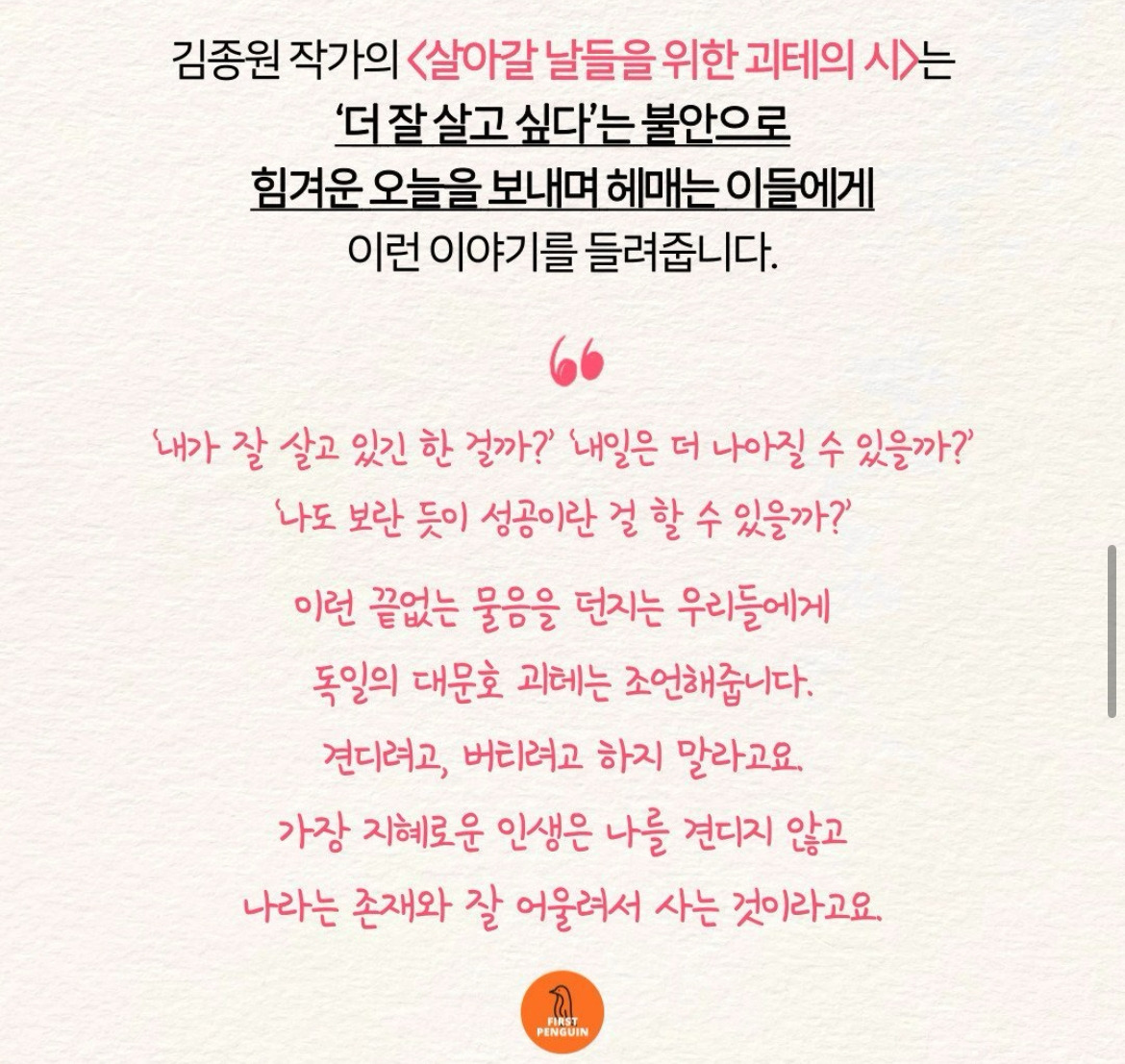 살아갈 날들을 위한 괴테의 시 신간 저서