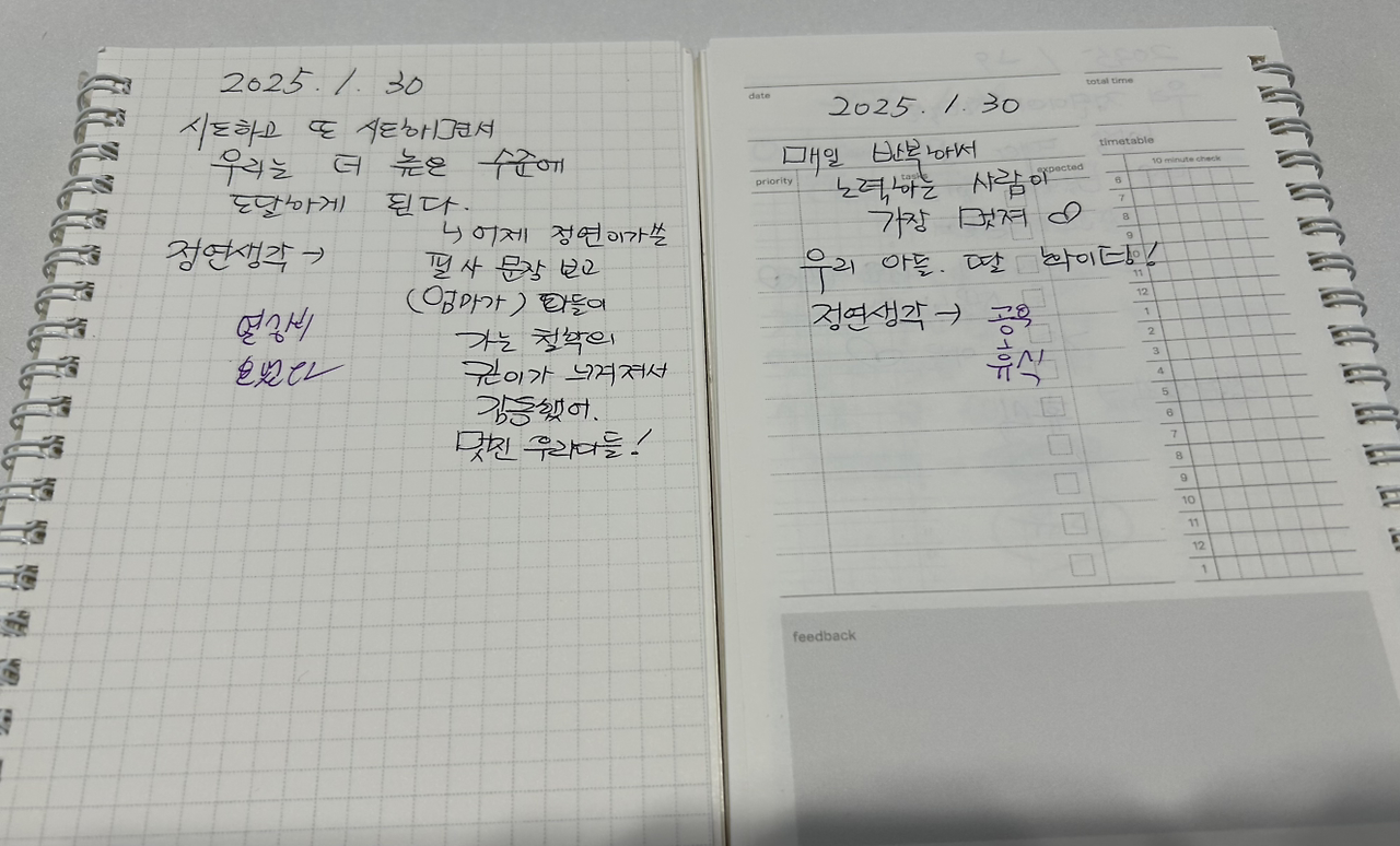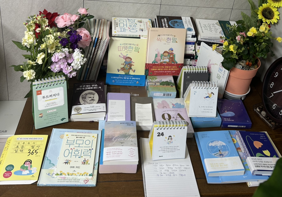 오늘 고2 아들이 바라본 부모의 예쁜 말 필사 노트와 하루 10분 따라 쓰기 인문학 워크북 시리즈 필사 글이 역시 그간 지나온 걸어온 우리의 시간이 녹아 있는 것 같아 감탄한다. 아들과 딸과 같이 가는 우리의 지성 길이 하나에서 출발해 다시 만나는 그윽한 산책이며 각자의 삶으로 이끄는 멋진 과정을 초대하며 살게하고 성장이 가능한 멋진 언어와 글의 숨결이 전하는 깊은 학문이며 삶의 무한한 변화다.