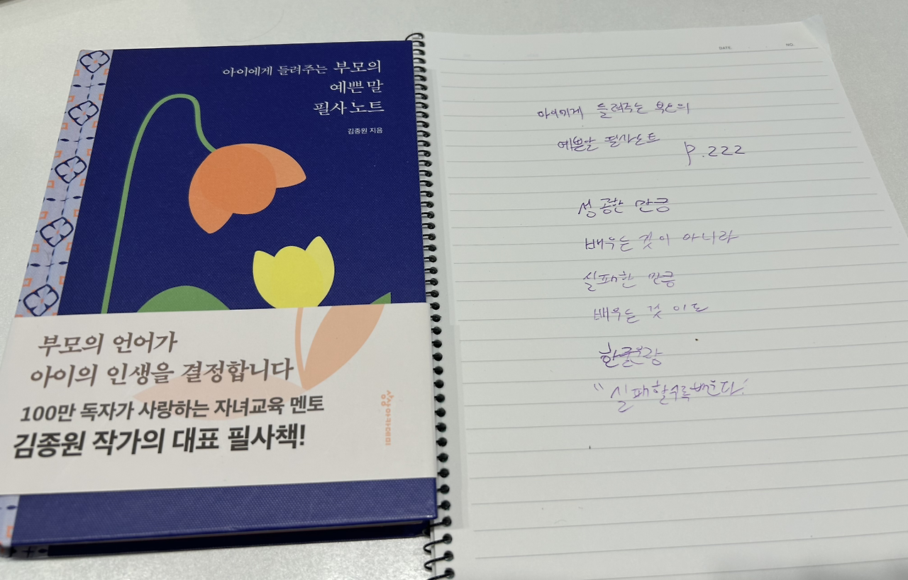 2. 부모의 예쁜 말 필사 노트 222p 를 읽고