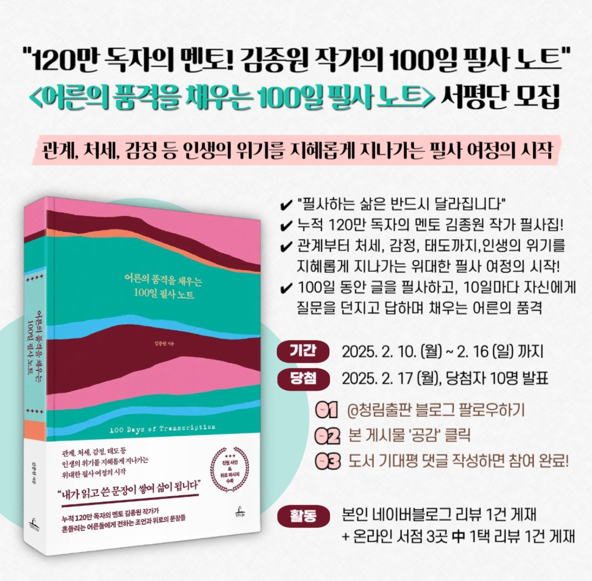 4. 어른의 품격을 채우는 100일 필사노트 서평단 모집 (청림출판 공식 블로그)