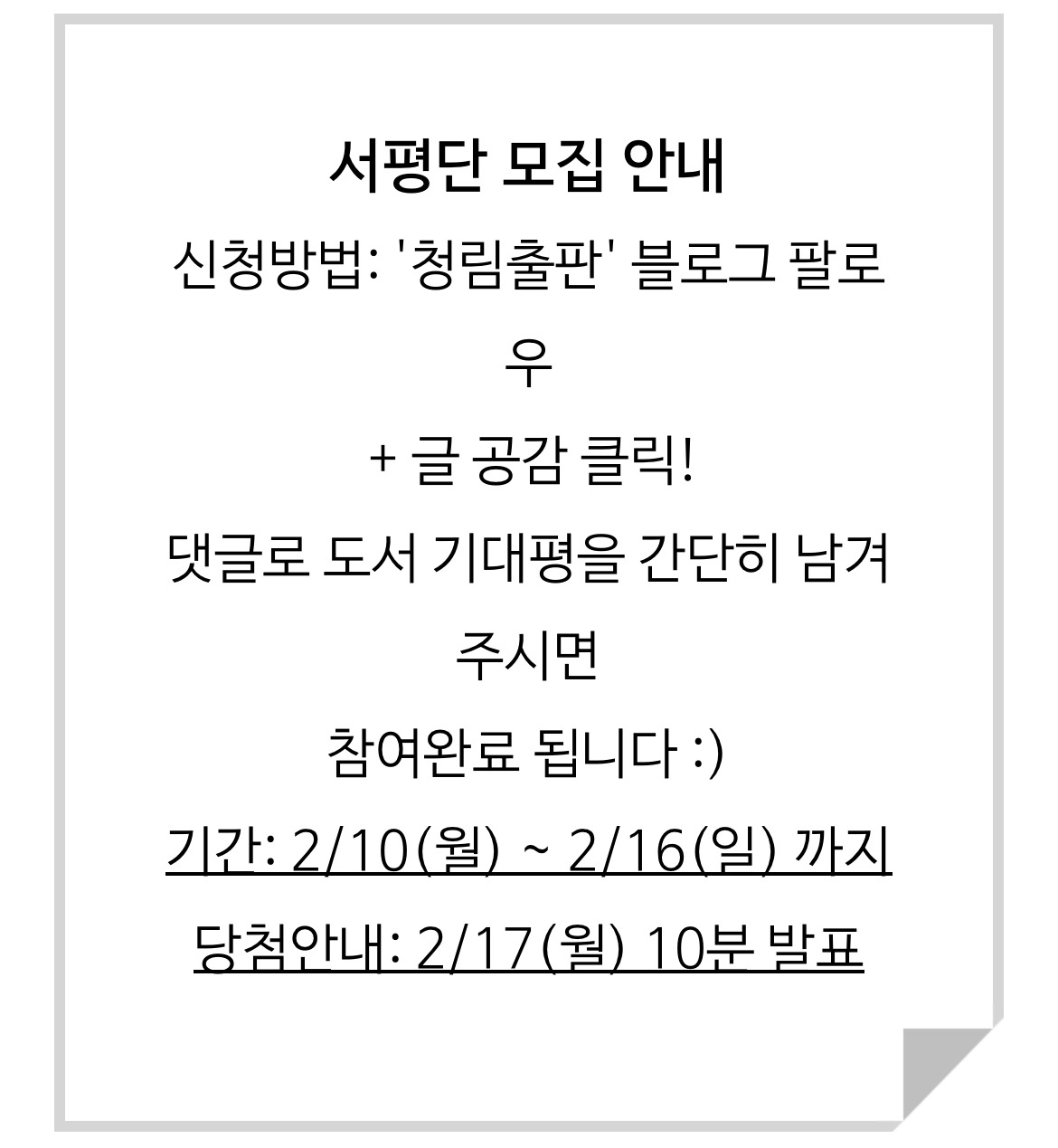 청림출판 서평단 모집 ~2월 16일 까지 하단 링크에서 신청