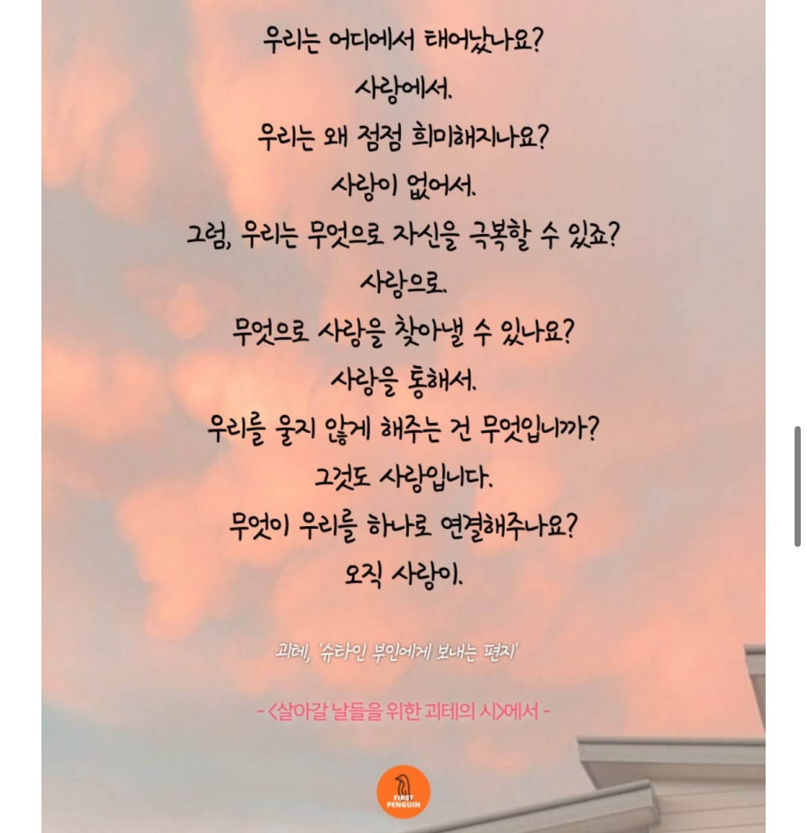 인생에서 가장 행복한 순간을 실천하며 글을 쓰는 유북 비즈 작가 사색가 김주영입니다. 따스한 삶을 위하여 좋은 생각과 예쁜 글을 쓰고 희망을 말하는 필사 낭송 글을 사랑하는 사람