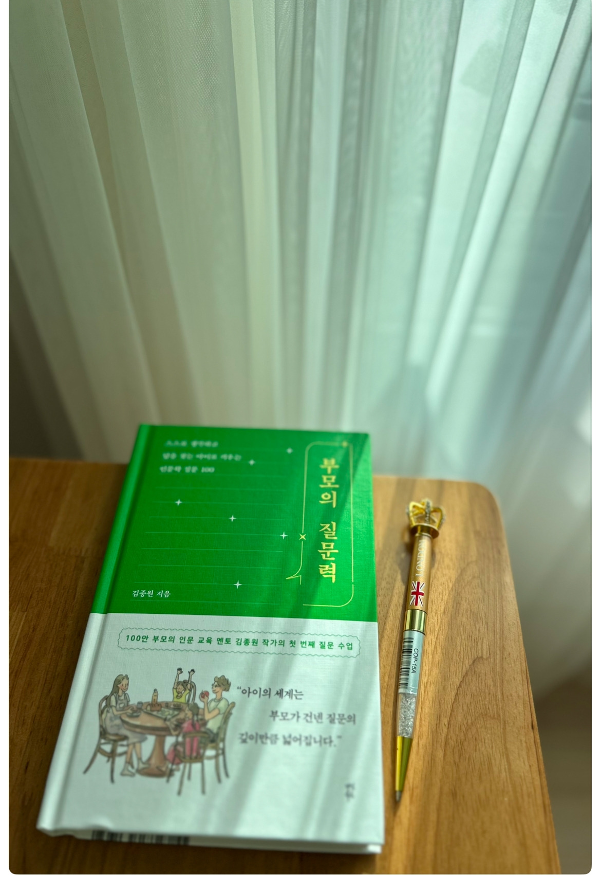 스스로 생각하고 답을 찾는 아이로 키우는 인문학 질문 100 <부모의 질문력> 김종원 작가님 저서 하루 한마디 인문학 질문의 기적 일본판을 필사하는 중인데 한 곳에서 연결된 부모가 반드시 육아와 일상의 깊이에 다가가야만 하는 좋은 책이다.