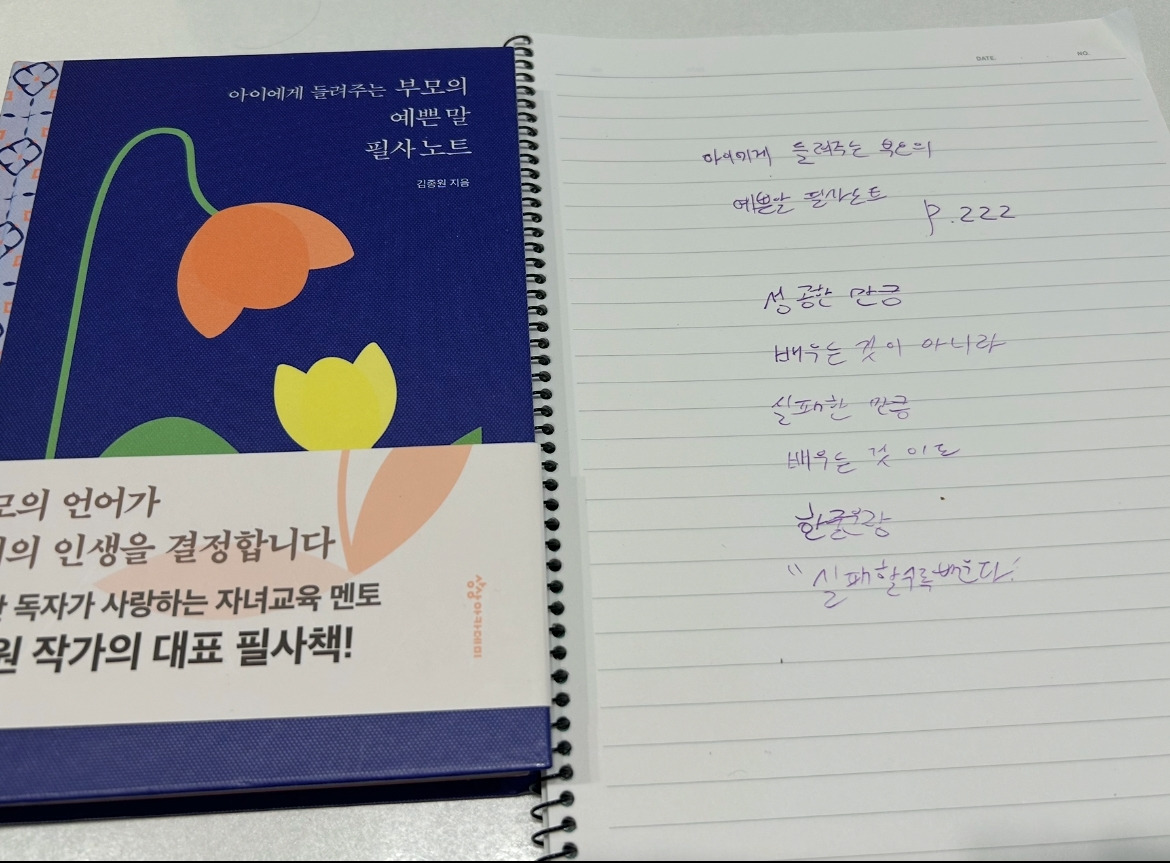 1. 부모의 예쁜 말 필사 노트 222p를 읽고