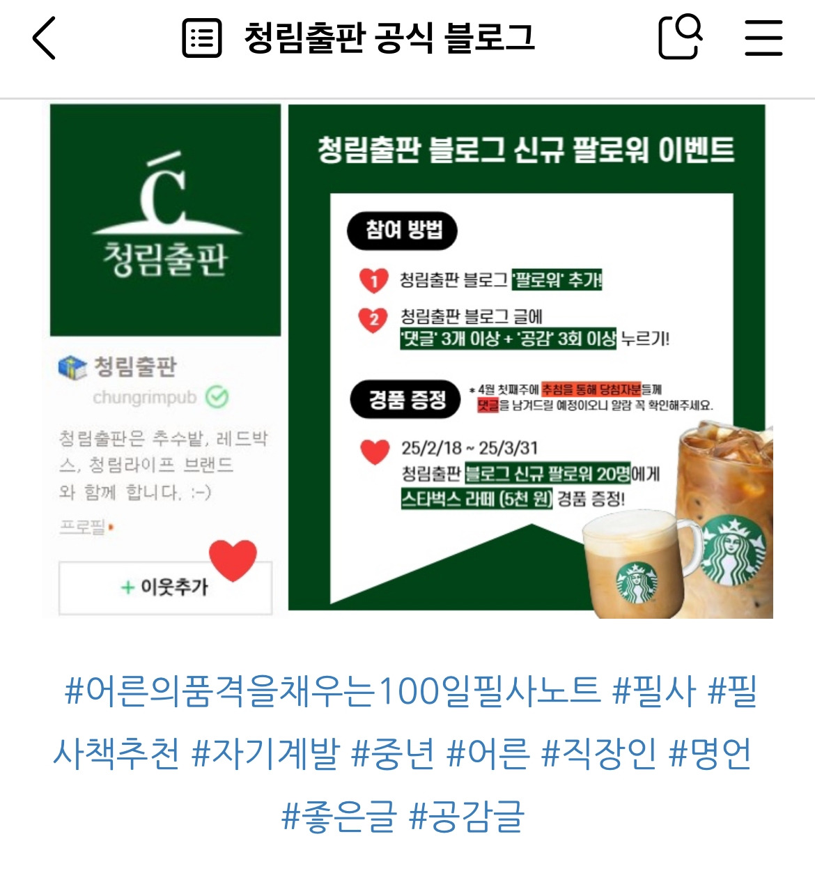1. 청림출판 경품 이벤트 ~3월 31일 까지