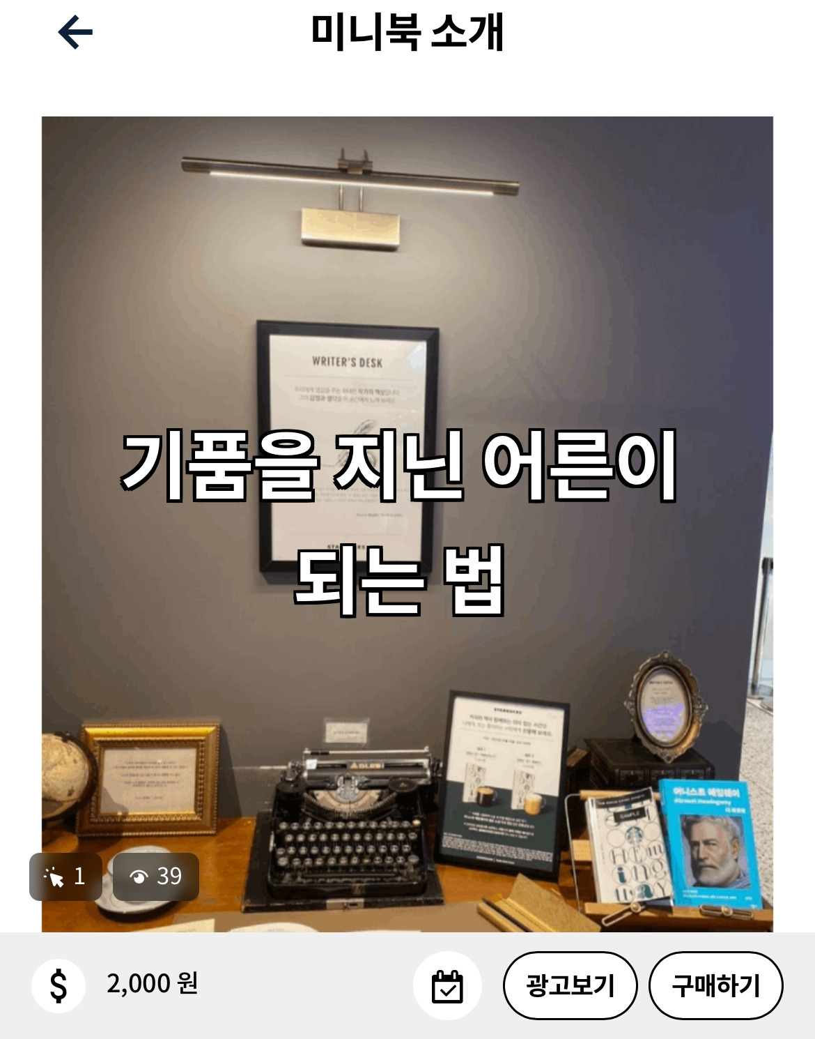 김주영의 유북 컬렉션 미니북 출간 하단 링크 안내