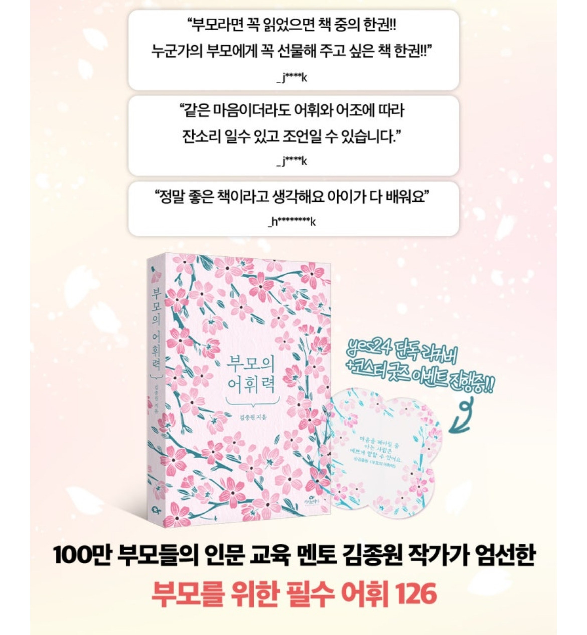 부모의 어휘력 벚꽃에디션 예스 24 리커버 코스터 굿즈 증정