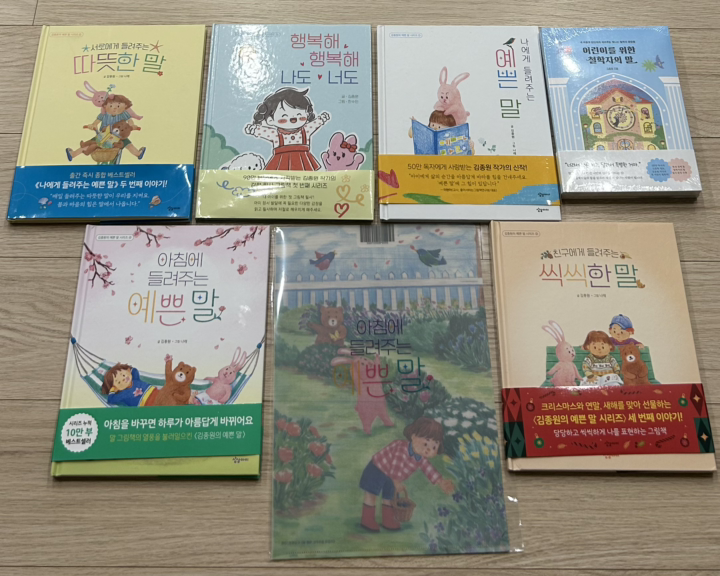 나에게 들려주는 예쁜 말, 서로에게 들려주는 따뜻한 말, 친구에게 들려주는 씩씩한 말, 행복해 행복해 나도너도, 아침에 들려주는 예쁜 말 벌써 5번 째 철학 그림동화 시리즈가 옷을 입고 찾아온다.