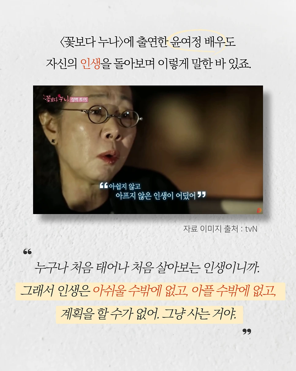 아쉽지 않고 아프지 않은 인생이 어디 있어