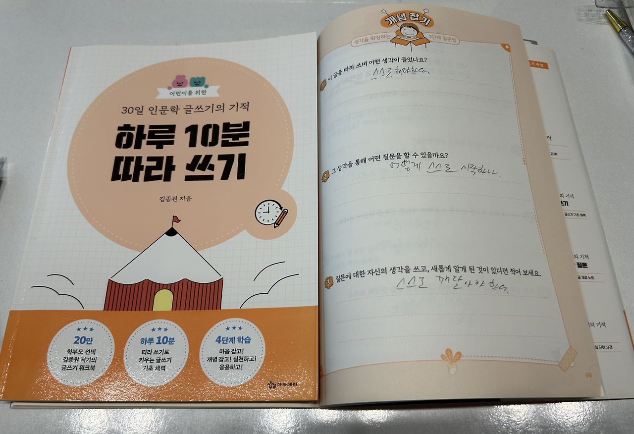 3. 하루 10분 따라 쓰기 99p 를 읽고
