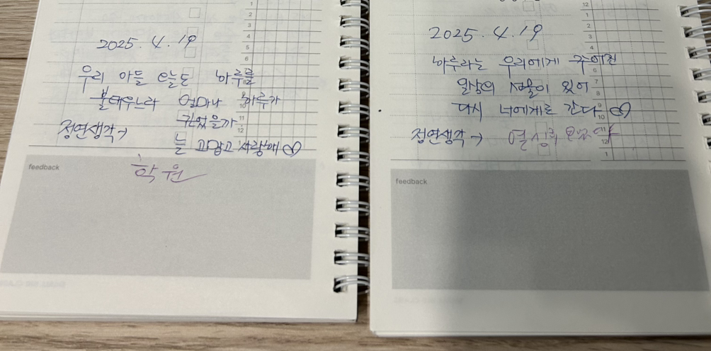 아들과 엄마 질문 일기 교환 일기