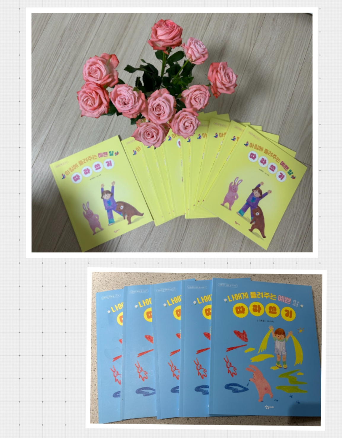 집안에 어린이가 딱 2명 있는데 사랑하는 조카 손녀가다니는 어린이집 반이 6~7세로 이루어진 통합반이다.지난해보다 어린이집 선생님과 학생 수가 줄었다는 건해마다 다른 출산 비율의 영향을 느낄 수 있는 대목이기도 해서 아이의 연령이 다른데 잘 적응할까 라는 질문에 답하듯 언니 오빠 또래와의 집단 생활에 잘 적응하고 즐거워 하는 걸 보며 김종원 작가님 저서 예쁜 말시리즈 그림책 동화 부록인 나에게 들려주는 예쁜 말 과 아침에 들려주는 예쁜 말 따라 쓰기 책으로 사랑하는 조카 손녀와 6, 7세 친구들에게 꼭 필요한 선물이 되면 좋겠다.