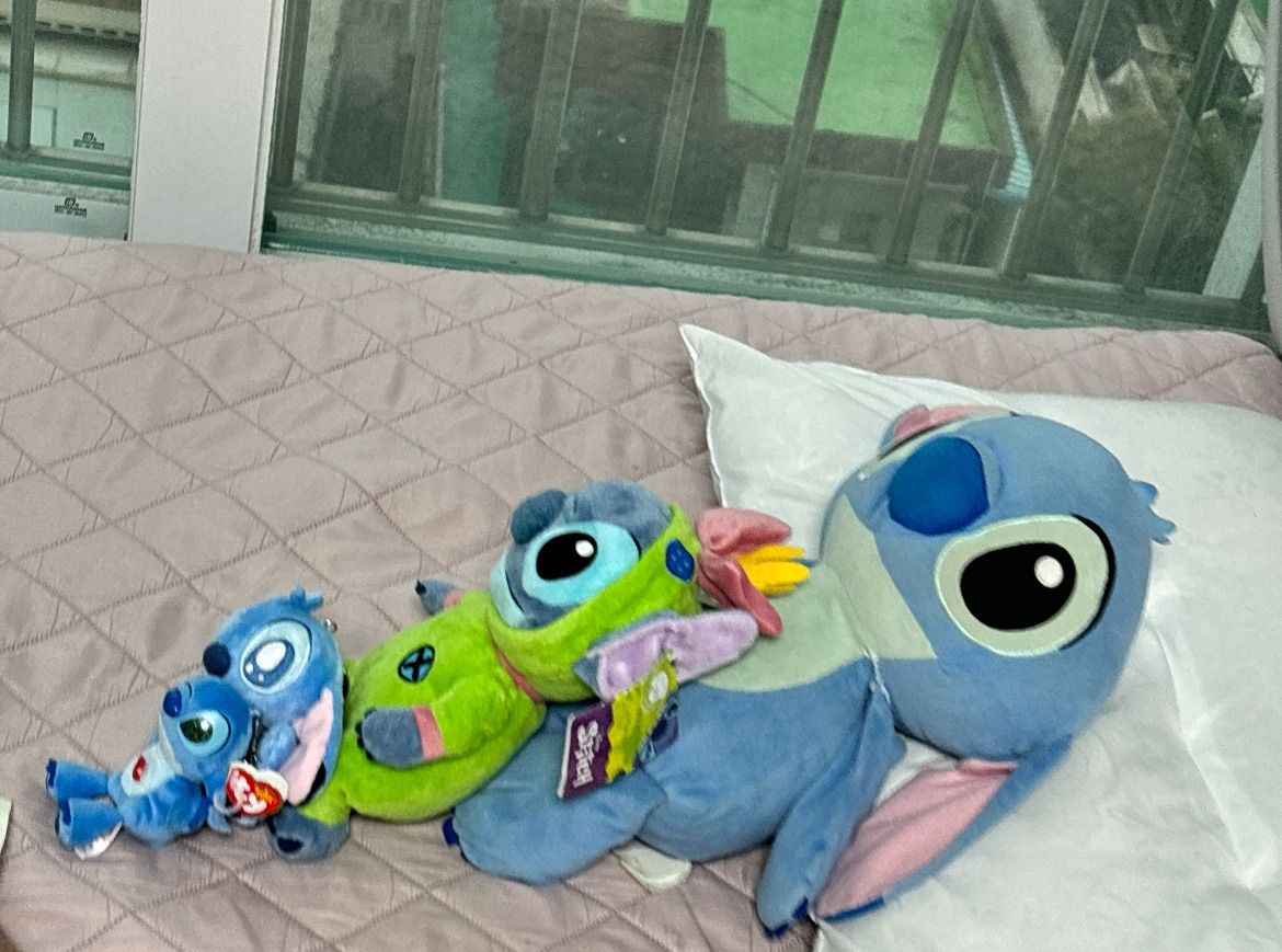 애들은 스티치 인형을 데리고 놀기를 좋아하는데 특히큰애가 동생을 위한 인형 수집에 도움을 준다. 어제는 동생방에서 돈 봉투를 만들고 줄줄이 세워놓은 스티치인형을 나란히 세워 놓고 자신들이 이름지은 코봉이를침대에 놓아 사진에 담아 보내 준다.