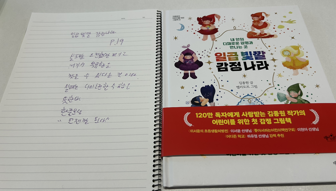 2. 일곱 빛깔 감정 나라 19p 를 읽고 고2 필사
