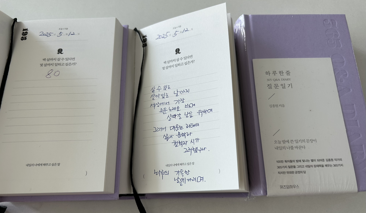 기온이 17도 인데 마치 뜨거운 여름날을 연상케 하는 지구의 온도가 높아간다.시대를 살다간 대문호 괴테의문학과 철학 삶의 시를 오래 사랑한 김종원 작가님과 이어령 박사님께서 살아 낸 지성과의 대화처럼 오늘 아들과 쓴 <하루 한 줄 질문 일기 365 qna 다이어리> 에서 나온 백살 까지 산다면 사는 날까지 내가 해야 하는 나의 일이무엇일까 고민하지 않을 수 있다. 내가 살아갈 날들을 위한 나의 나날에 기록하며 집중하며 사는 내 삶이자 나날의 오늘이 전부 이니까.