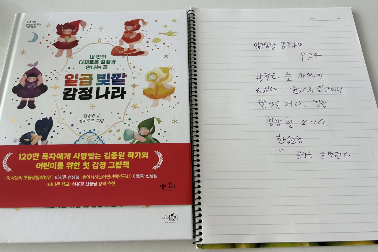 2. 일곱 빛깔 감정 나라 24 p 를 읽고 고2 필사