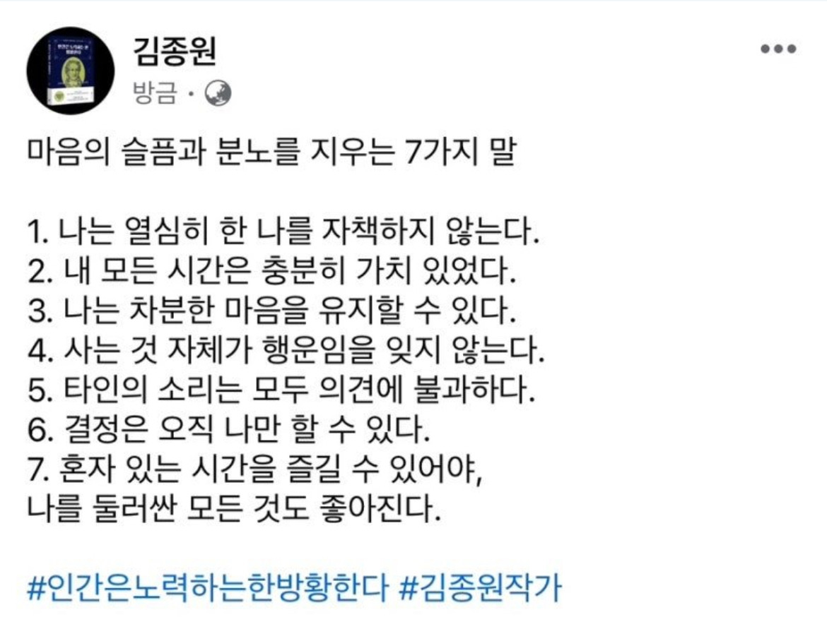 김종원 작가님 저서 관련 글 낭송 (4분 23초)