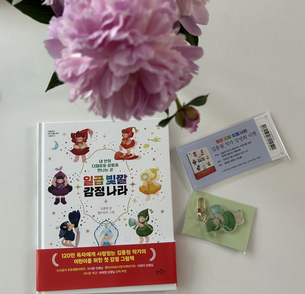 이번에 출간된 김종원 작가님 첫 감정 그림책 일곱 빛깔 감정 나라 교보 문고에서 펀딩도서와 함께 온 요정 키링과 5월 24일 11시 부터 광화문 위켄드 아트홀에서 열리는 강연 티겟이 함께 도착했다. 지난해 조승우 작가님과 하는 마음 우체국 콘서트 그리고 이번 인문학 강연 벌써 2년이 부쩍 지나는 시간과 세월이 그걸 말하고 있다.