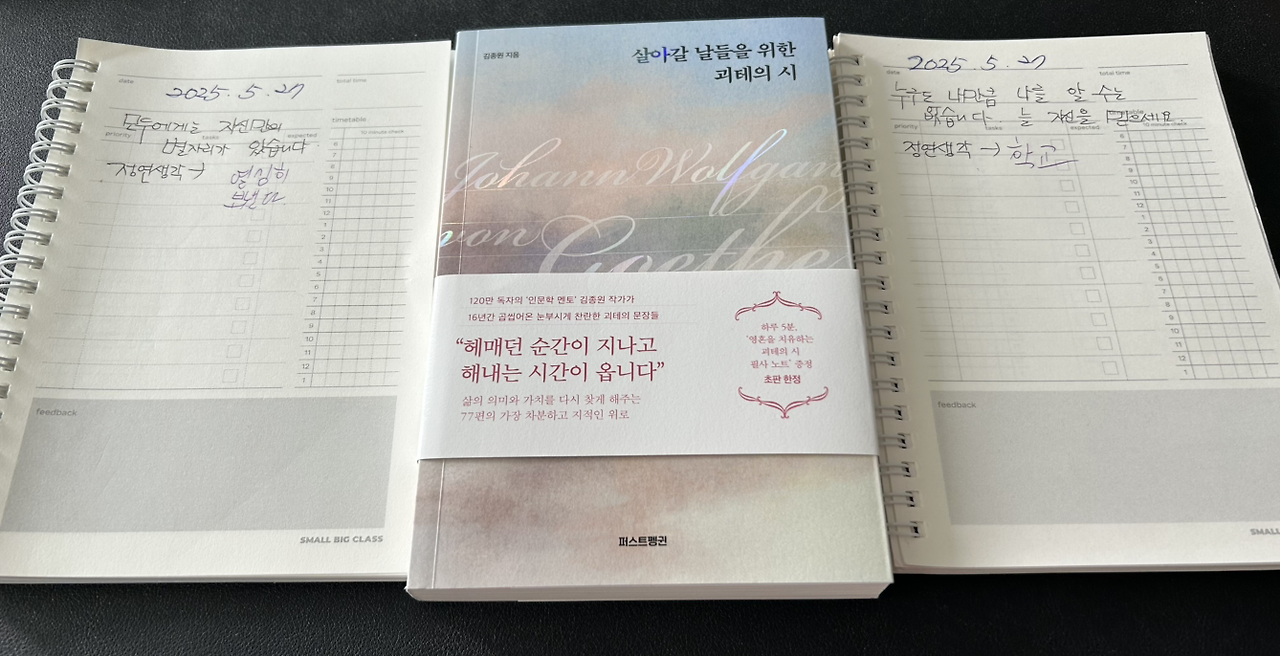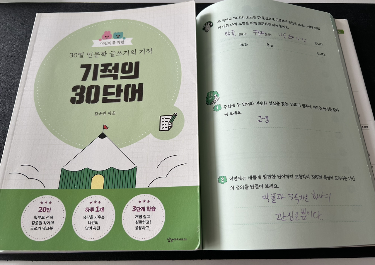 고2 아들이 꾸준히 필사하는 인문학 다이어리 <하루 한줄 질문 일기 365 Q&A 다이어리> <마음 우체국 교환 일기> <인문학 워크북> 중 기적의 30 단어와 하루 하나 인문학 질문, 하루 10분 따라 쓰기에서 한 권씩 다르게 선택하여 낭송까지 독서와 필사 산책을 병행한다.
