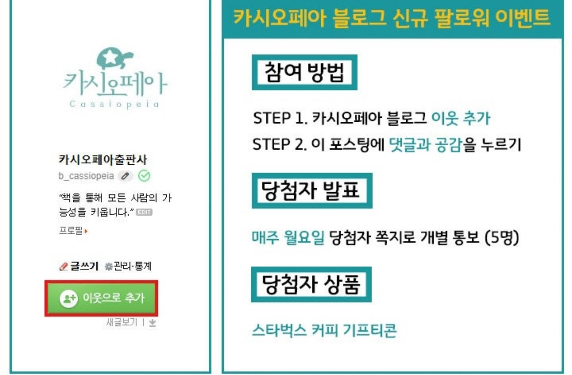 카시오페아 블로그 이웃추가 스타벅스 커피 이벤트 증정 [네이버 블로그] 블로그를 소개합니다.