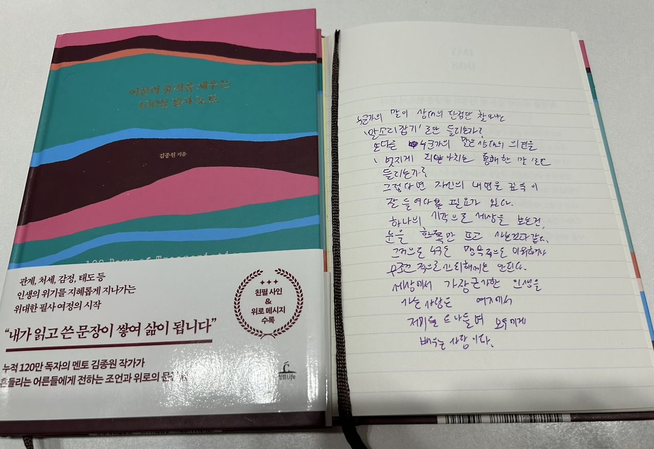 이런 부재에서 나를 꺼낼 수 있는 일상의 학습이자 연습을 매일 하며 산다는 건 곧 좋은 글을 보고 쓰는 필사의 반복을 하며 나와 어린 자녀의 말하기 글쓰며 달라지는 삶의 태도와 습관을 따라 변화가 시작 된다.