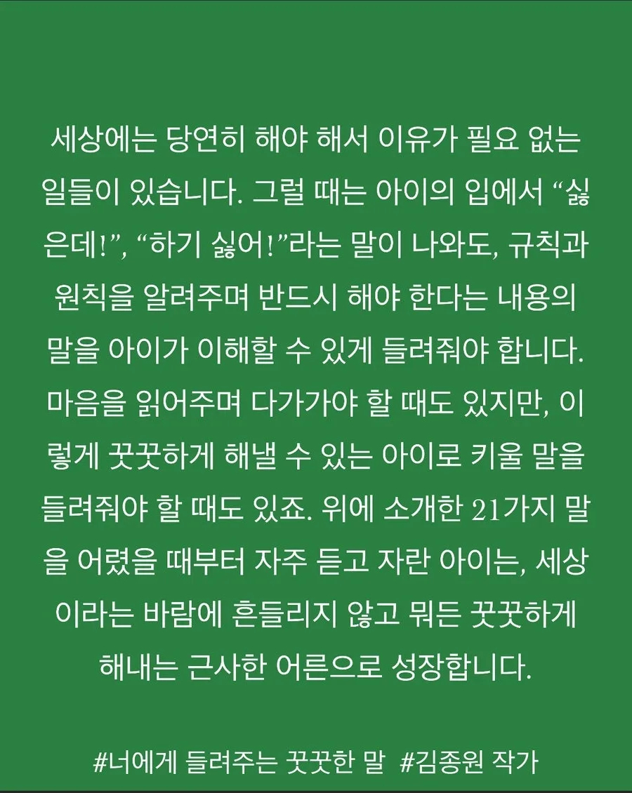 4. 아이가 꼭 해야 하는 일에는 마음을 읽어주는 대화가 아닌 분명한 원칙과 이유를 전달하는 꿋꿋한 말이 필요합니다