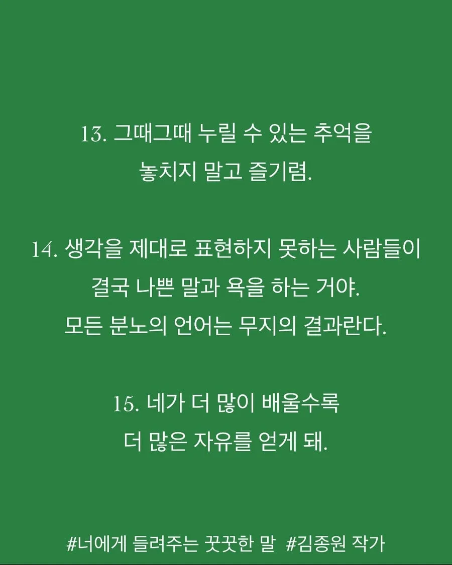 오늘의 인문학 김종원 작가님 글 낭송 안내입니다