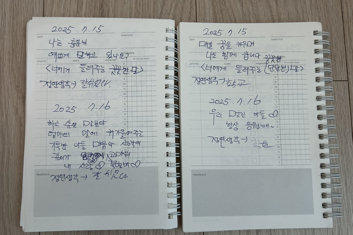 우리 딸 젊은 친구들이 나의 보배다. 부모의 예쁜 말 필사 노트 증정 굿즈 상품이었던 크리스탈 문진에 대해 오해했었다.
