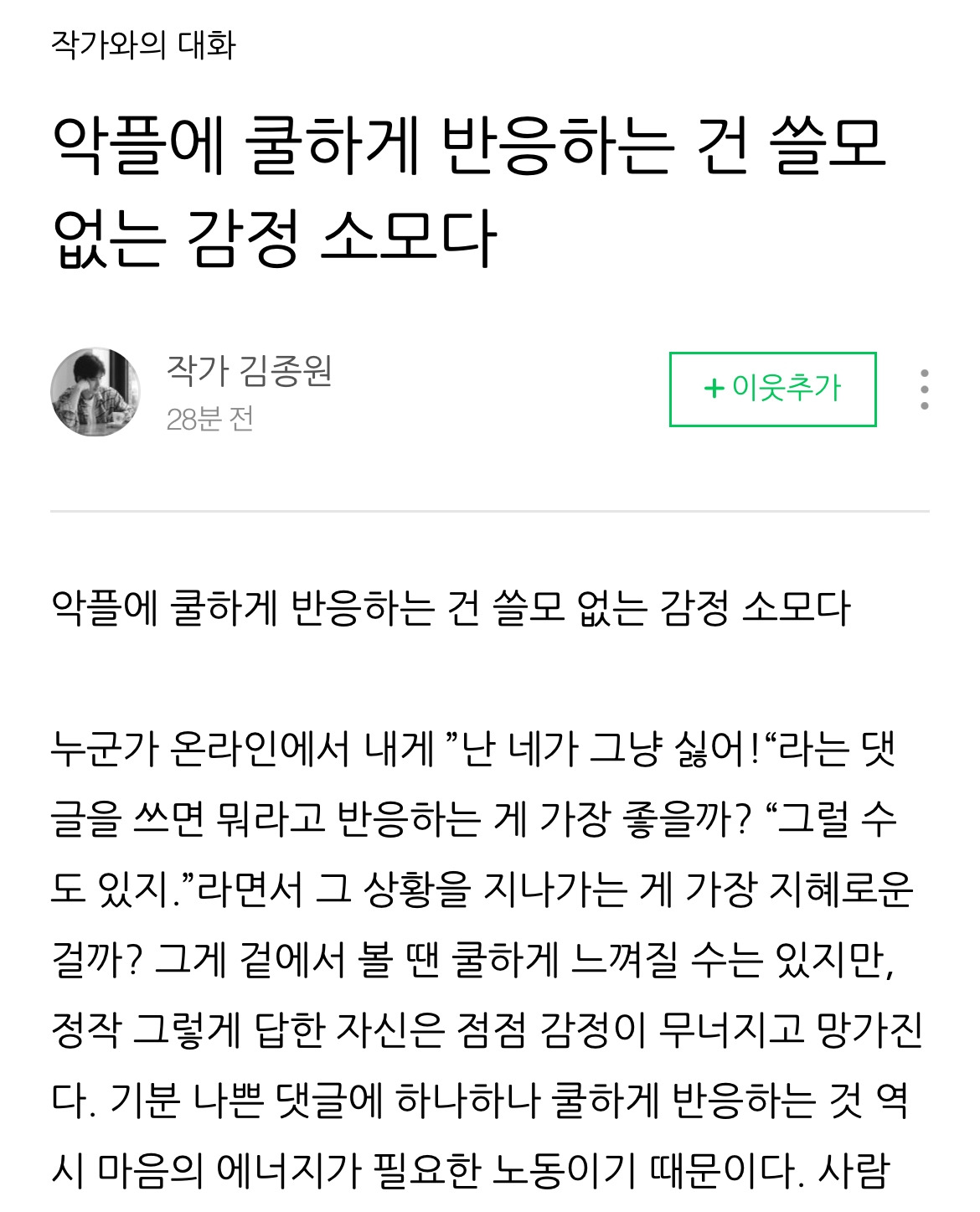 1. 악플에 쿨하게 반응하는 건 쓸모 없는 감정 소모다