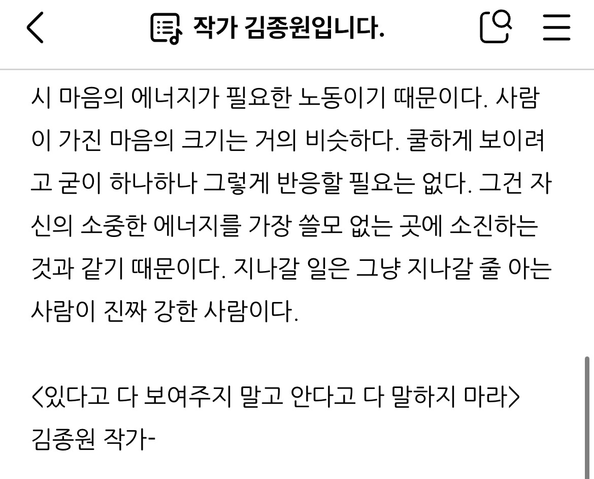 오늘의 인문학 김종원 작가님 글 낭송 안내입니다