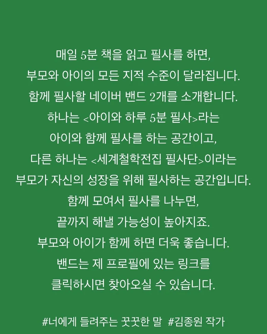 오늘의 인문학 김종원 작가님 글 낭송 안내입니다