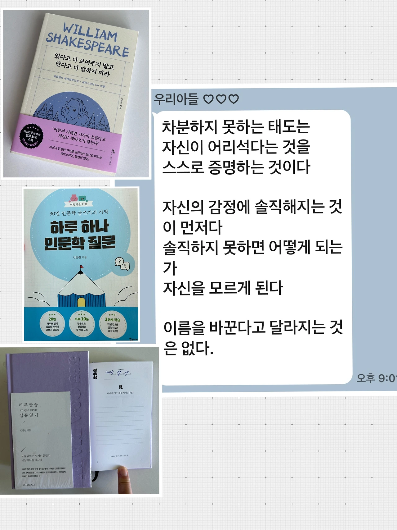 책 하면 아이들은 가장 먼저 엄마가 떠오르는 모양이다. 커피숍에 앉아 있는데 뒤 테이블에 착석하는 중년여인들의 대화에서 아이들은 서로 정한 것처럼 지그 웃으며 두 녀석이 똑같이 나를 본다.