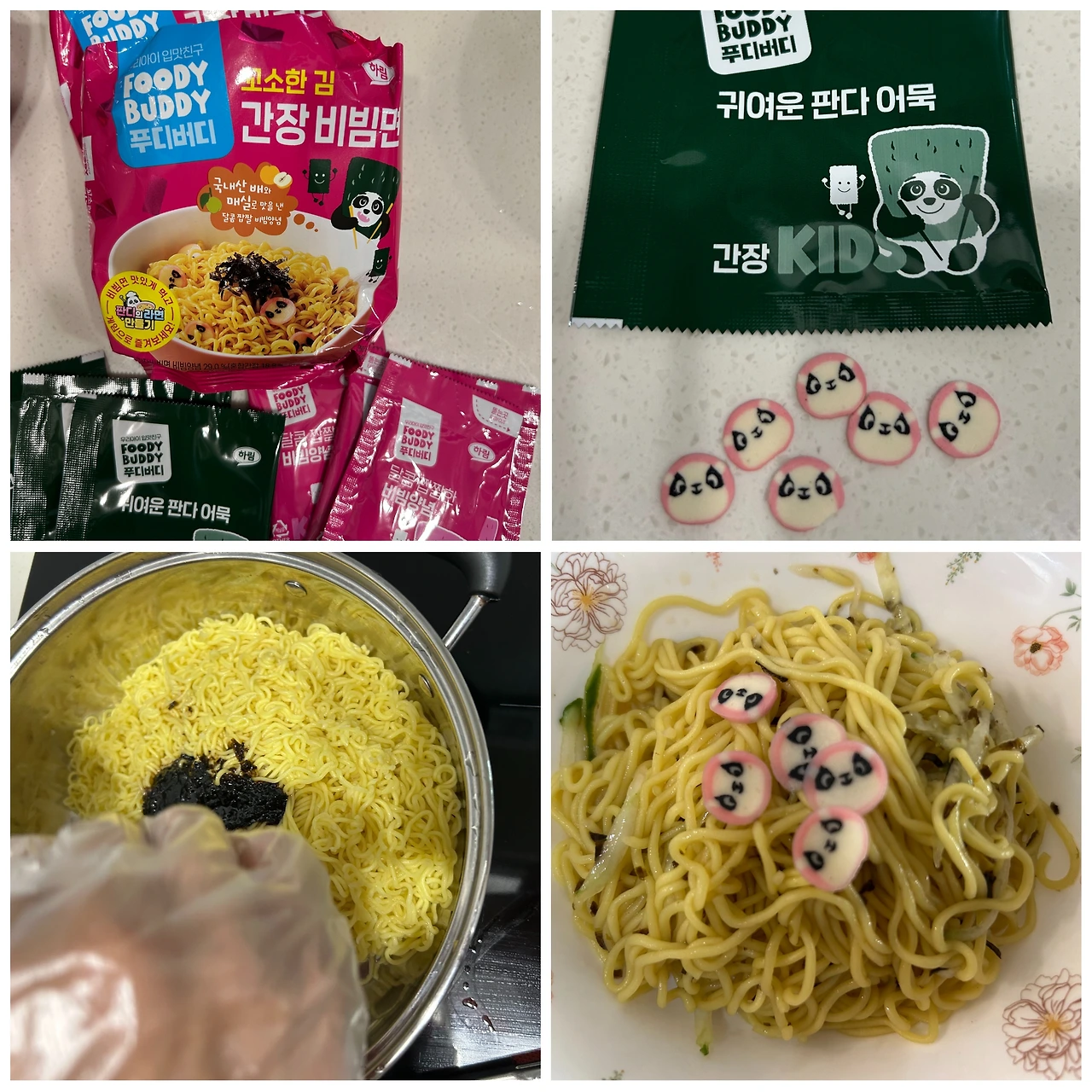 고2 아들이 만들고 가족이 함께 하는 저녁 식단인데 앙증맞은 곰돌이 어묵이 분위기를 업시켜 끌어올린다