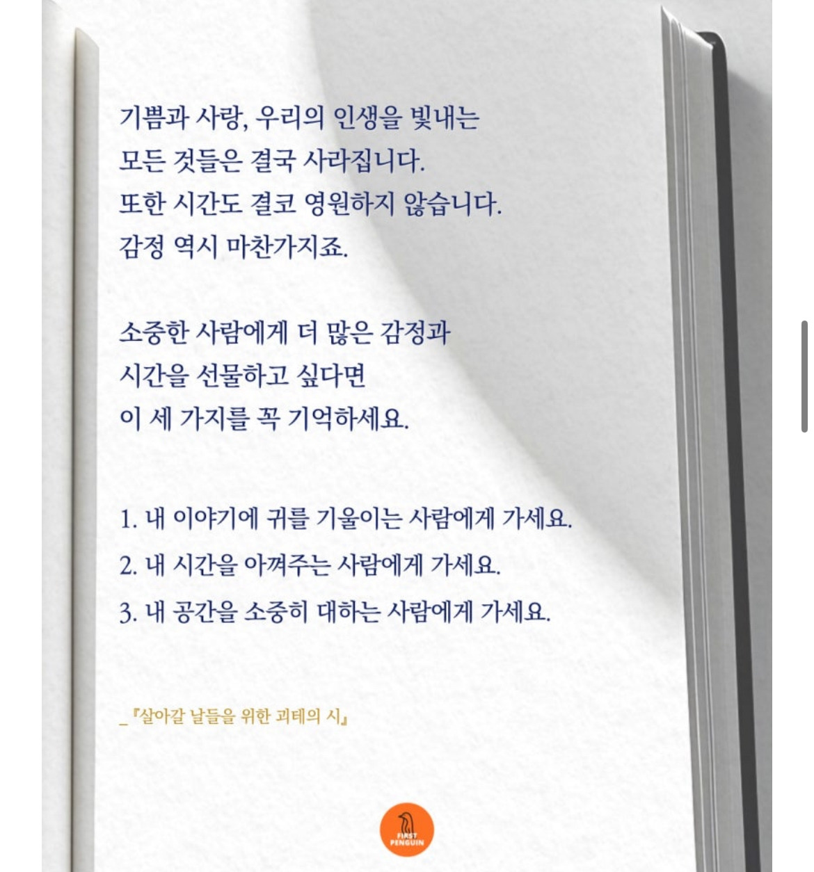 인생에서 가장 행복한 순간을 실천하며 글을 쓰는 유북 비즈 작가 사색가 김주영입니다. 따스한 삶을 위하여 좋은 생각과 예쁜 글을 쓰고 희망을 말하는 필사 낭송 글을 사랑하는 사람