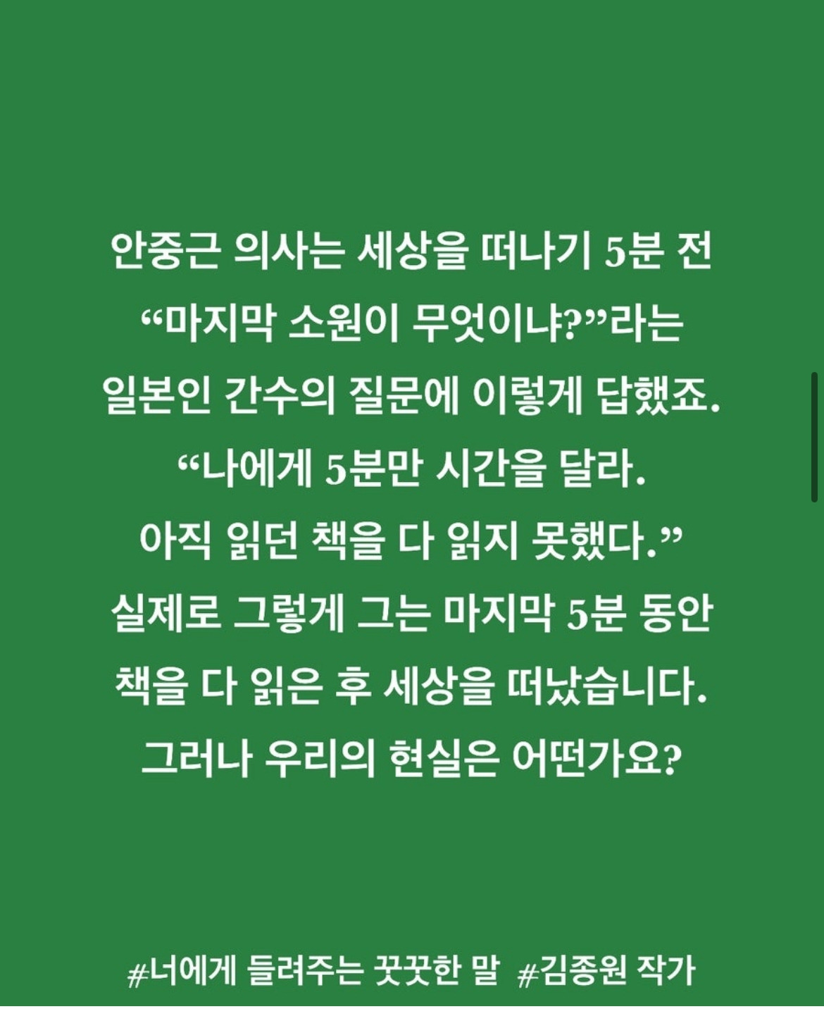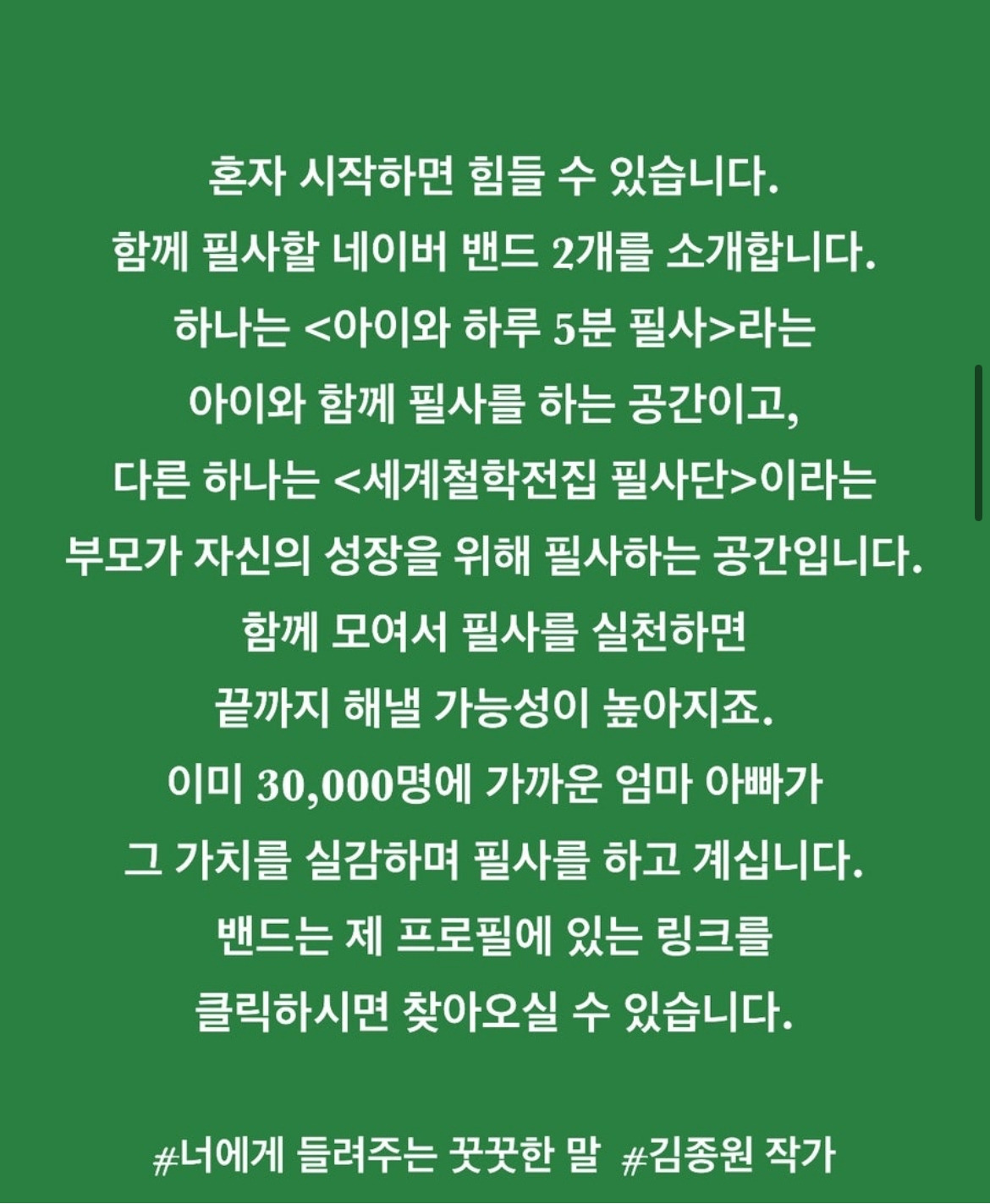 오늘의 인문학 김종원 작가님 글 낭송 안내입니다