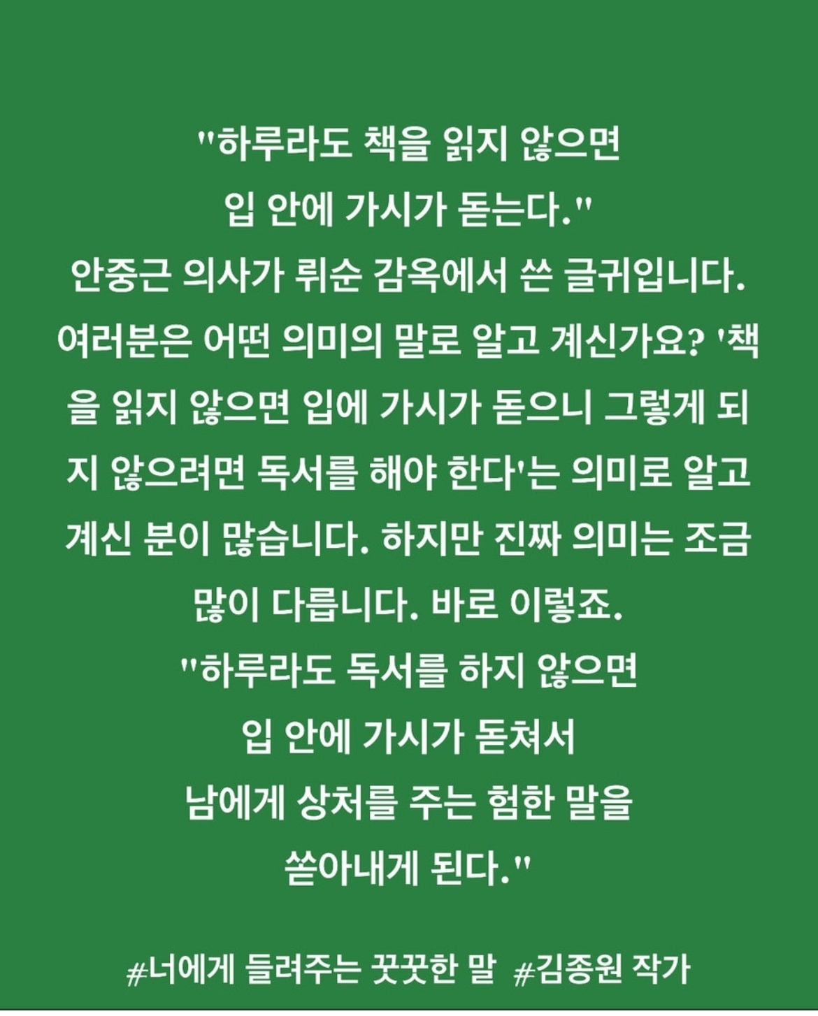 3. “하루라도 책을 읽지 않으면 입 안에 가시가 돋는다.” 알게 되면 감동하게 되는 이 말의 진짜 의미(너에게 들려주는 꿋꿋한 말)