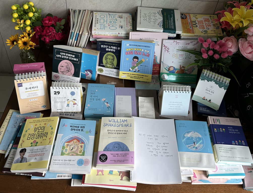 사랑스러운 조카 손녀가 다니고 있는 어린이집 6~7 세 통합반 친구들과의 예쁜 시간을 생각하며 내 마음이 벌써 가득해진다. 나에게 들려주는 예쁜 말 따라 쓰기 (데이 스타) , 일곱 빛깔 감정 나라(상상 아이) 그림동화 책을 보며 예쁜 생각 좋은 말에 꽃씨를 자꾸 자꾸뿌리는 아이의 하루 하루에 일상을 이끌 단비가 되기를 소망하며.